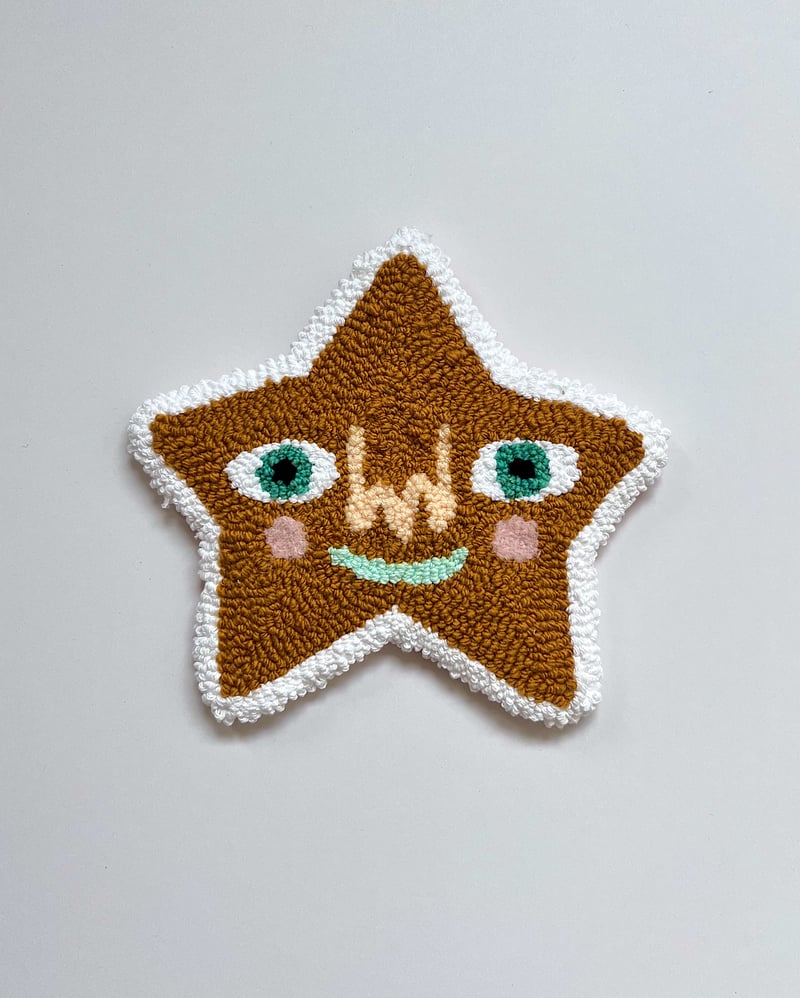 This hand-tufted star measures 11" across and doubles as both a Christmas tree topper and a wall hanging. It’s reinforced internally so it stands tall on your tree, with a little pocket in the base to slide the top branch into. When the holidays are over, a D-ring on the back allows you to hang him on your wall and enjoy him all year long.