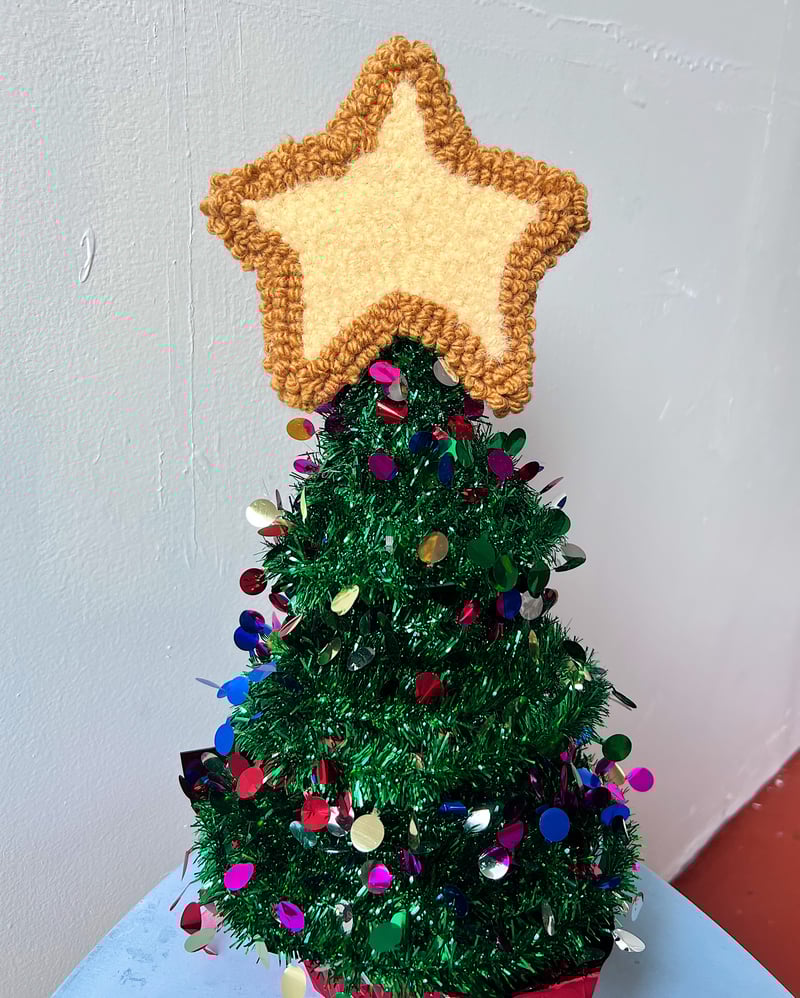 These mini hand-tufted stars measure 6" across and double as both Christmas tree toppers and wall hangings. They've each got a little pocket in the base to slide the top branch into and when the holidays are over, a D-ring on the back that allows you to hang him on your wall and enjoy him all year long.