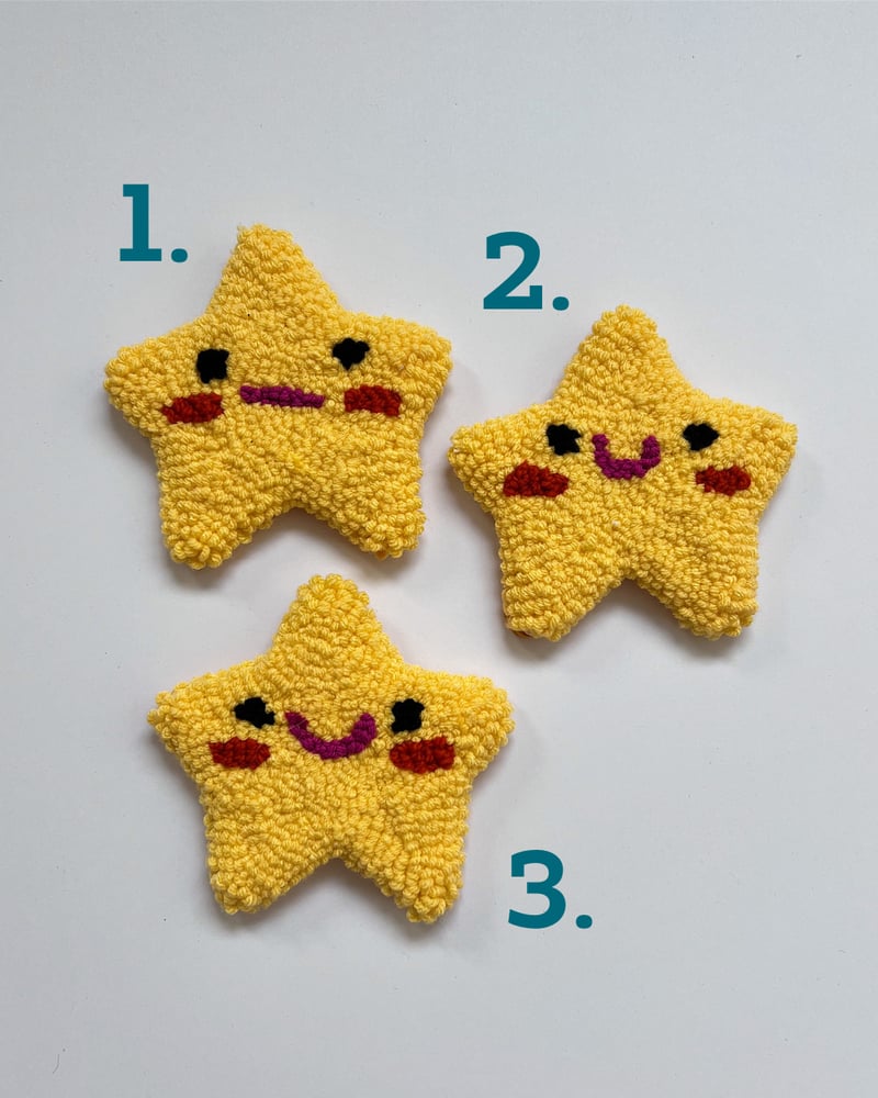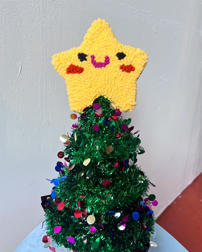 These mini hand-tufted stars measure 6" across and double as both Christmas tree toppers and wall hangings. They've each got a little pocket in the base to slide the top branch into and when the holidays are over, a D-ring on the back that allows you to hang him on your wall and enjoy him all year long.