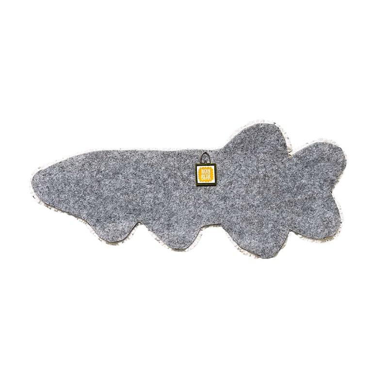 This hand-tufted pike measures 19" across, is backed with felt, and has a d-ring on the back so all you'll need to hang it on the wall is a finishing nail or command hook.